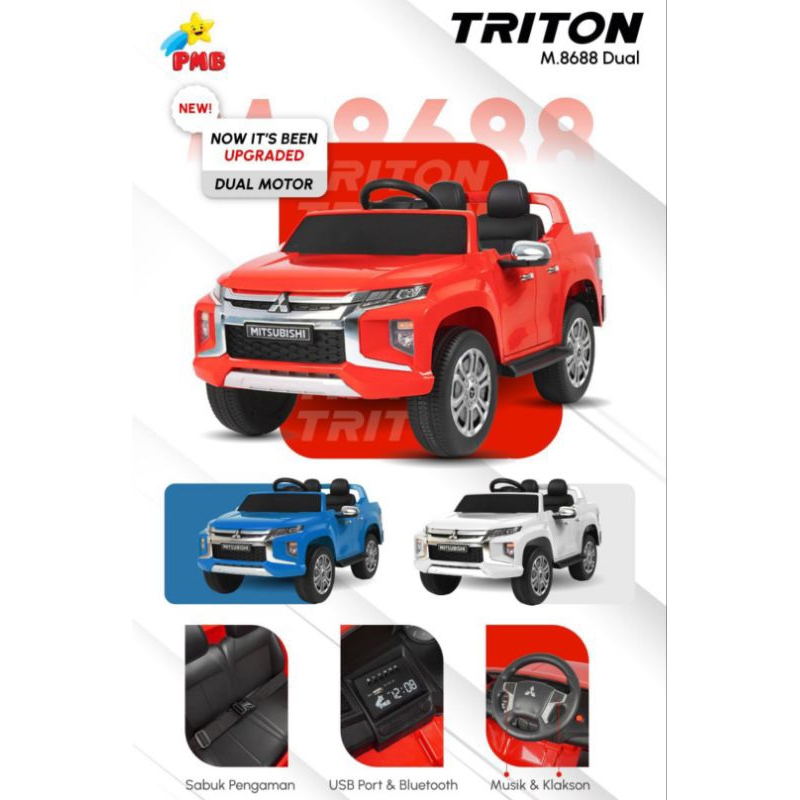 Mainan Mobil Aki Anak PMB Mitsubishi Triton M-8688 Nuwa 110 Dual Dynamo Dual Accu
