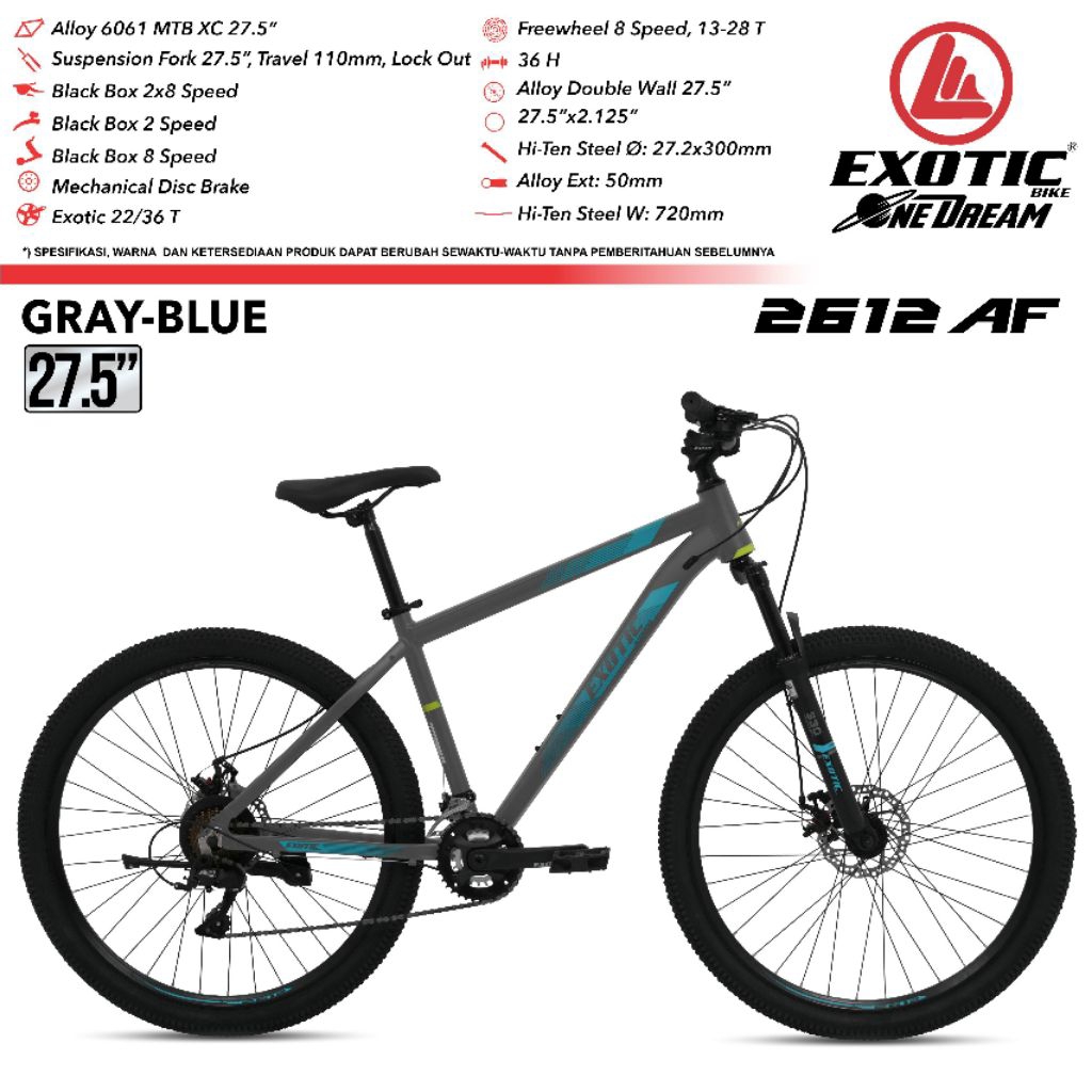 SEPEDA GUNUNG MTB 26 27.5 INCH EXOTIC 2612 AH ALLOY REM HYDRAULIC / EXOTIC 2612 AF ALLOY