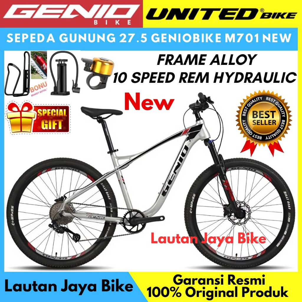 Sepeda Gunung MTB 27.5 GENIOBIKE M701 by Unitedbike Rem Hidrolik Frame Alloy 10 Speed NEW