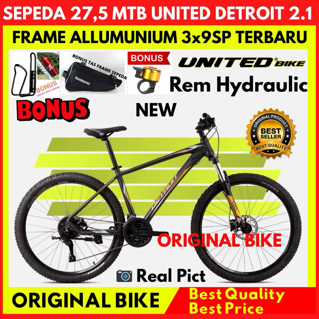 Sepeda Gunung 27.5 MTB UNITED DETROIT 2.1 Rem Hydraulic 27 Speed New