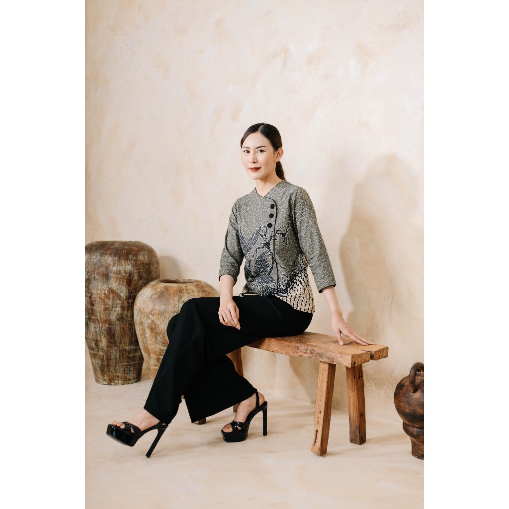 Adyatma Atmara Grey Blouse Batik Wanita Katun