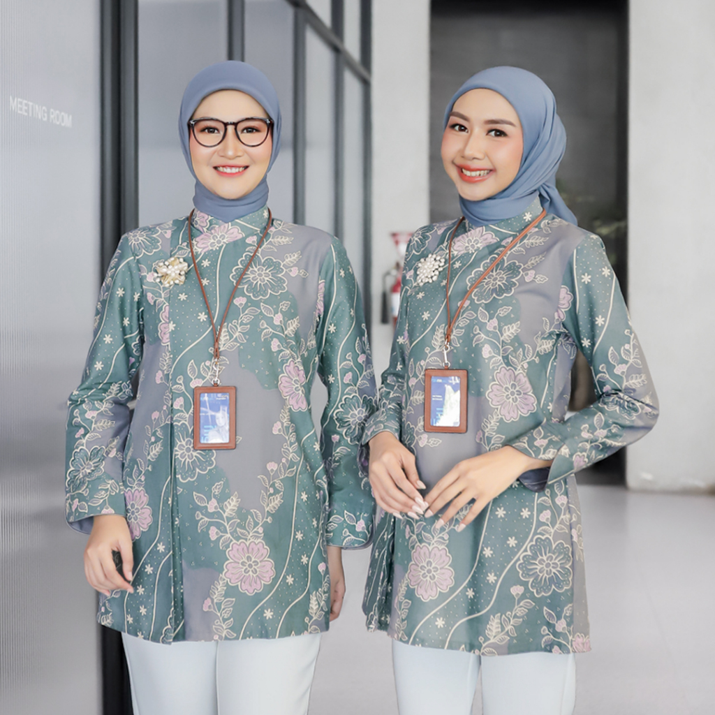 NINGSIH Tunik Furing Katun Batik Wanita Modern Batik Kerja Kantor Wanita