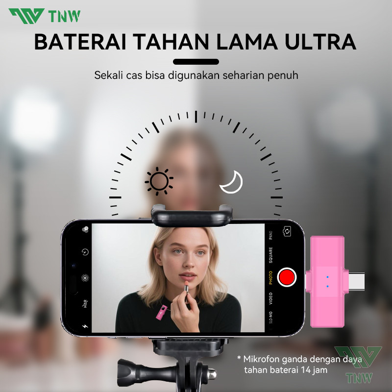 TNW A2/A3 2-In-1 Wireless Microphone Magnetic Mic Wireless Dual Lavalier Mikrofon HP Plug & Play Noise Reduction untuk L