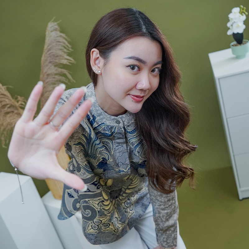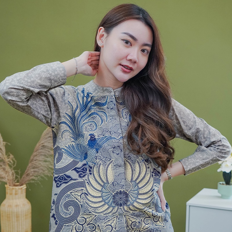 My Aksa Batik Wanita Blouse Suwargaloka Soft Grey