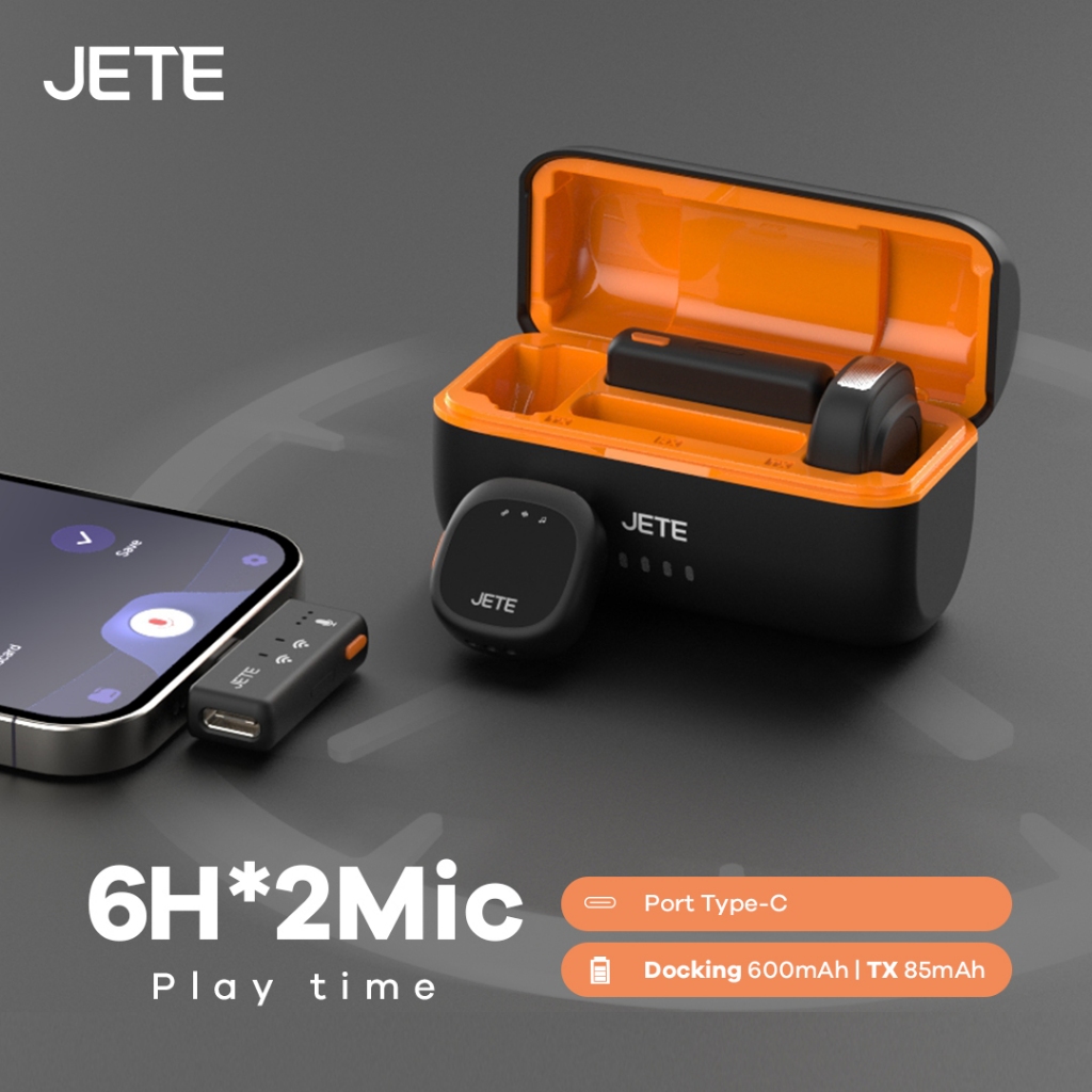 JETE Microphone Wireless MP2 Magnetic Mikrofon Type C With Adapter Lightning Mic Clip On Double Receiver With Charging D