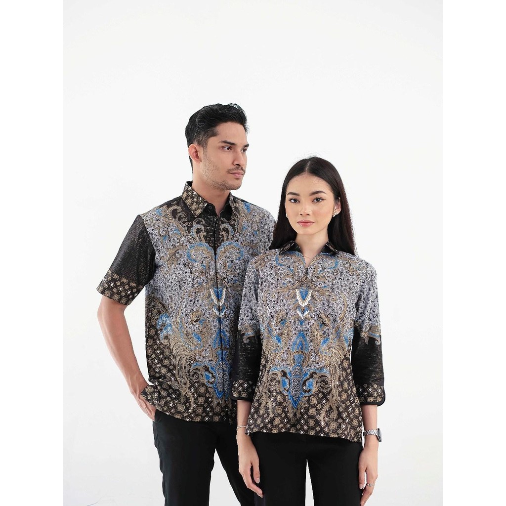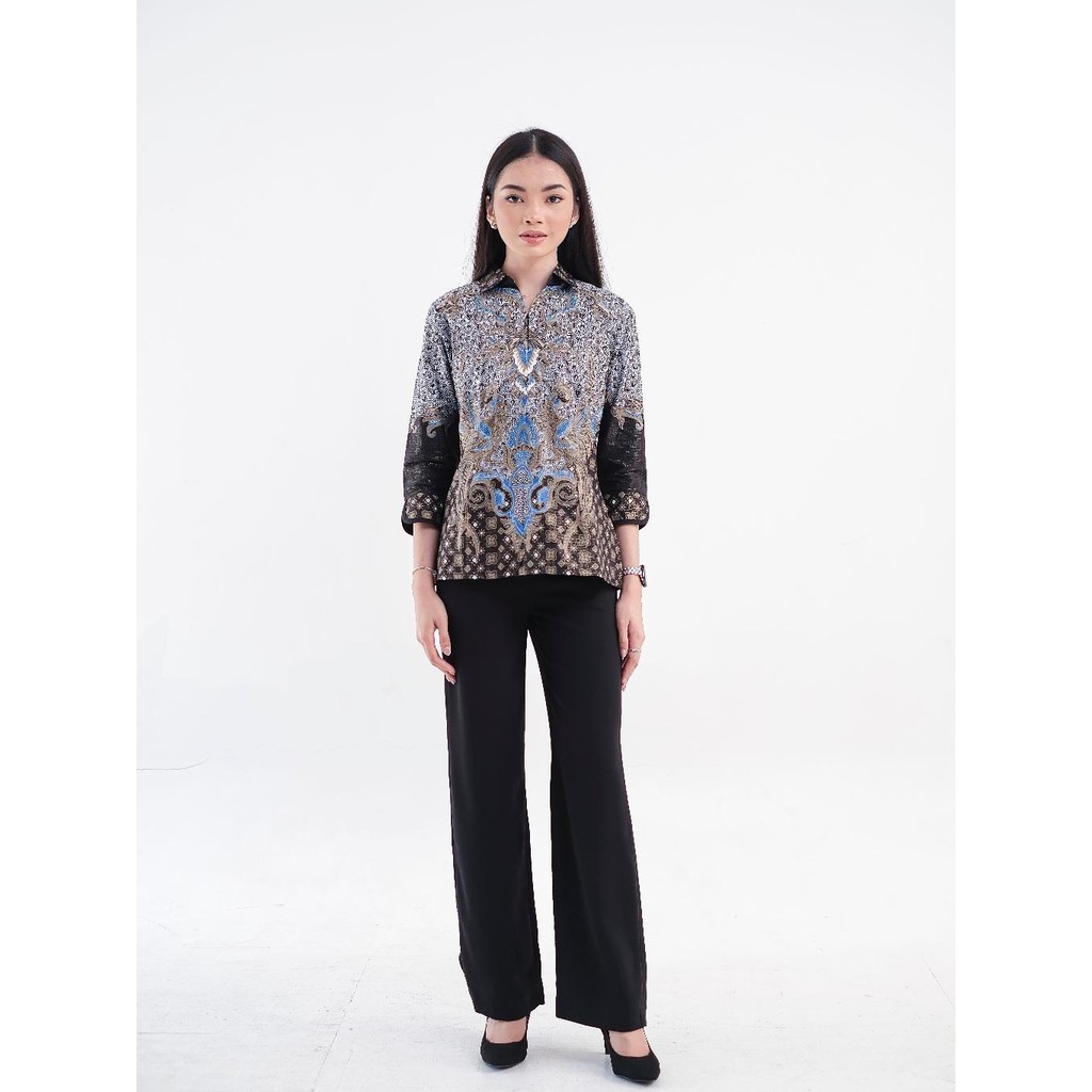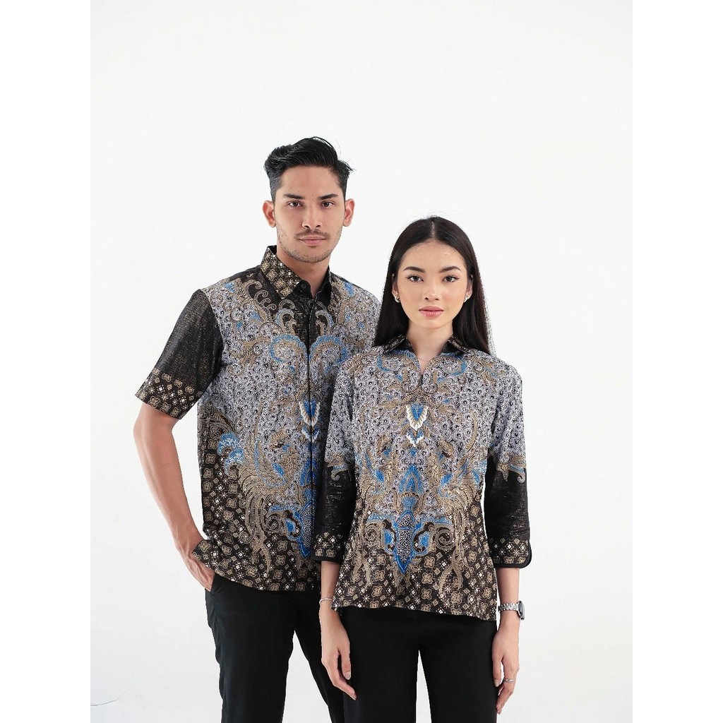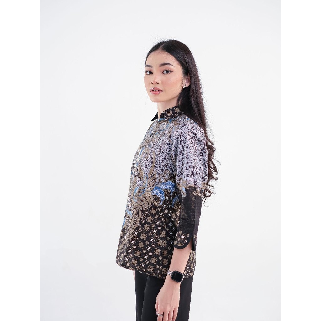 Adyatma Prawira Black Blouse Batik Wanita Katun Foil