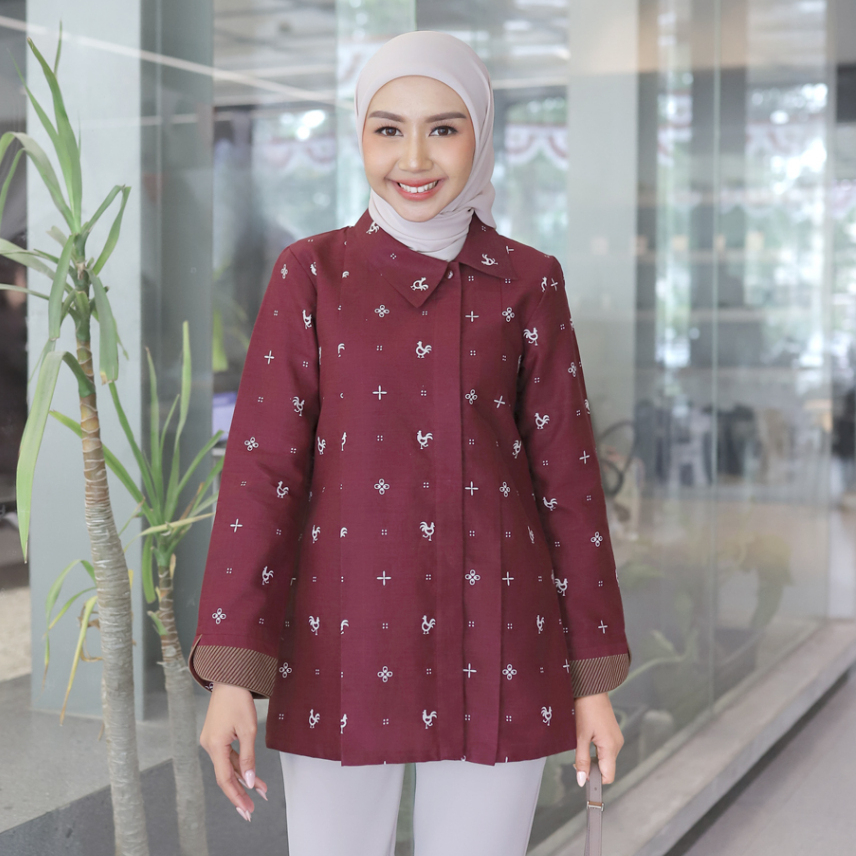 TIARA Blouse Furing Katun Batik Wanita Modern Batik Kerja Kantor Wanita