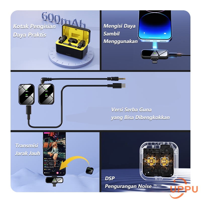UPPU K50 Wireless Microphone Mic Wireless Live Clip on Hp Camera