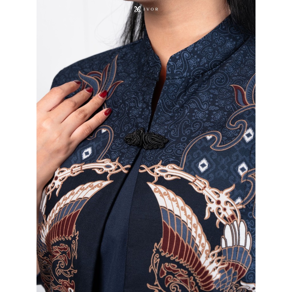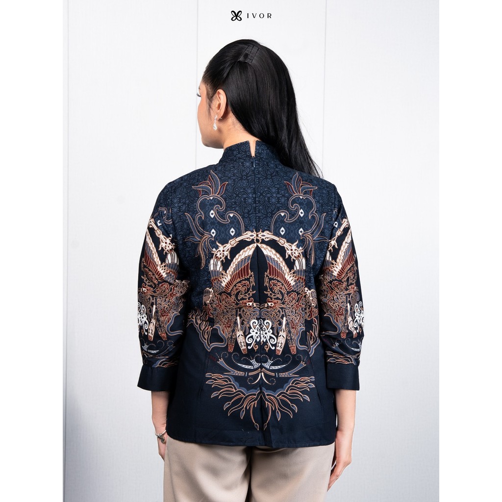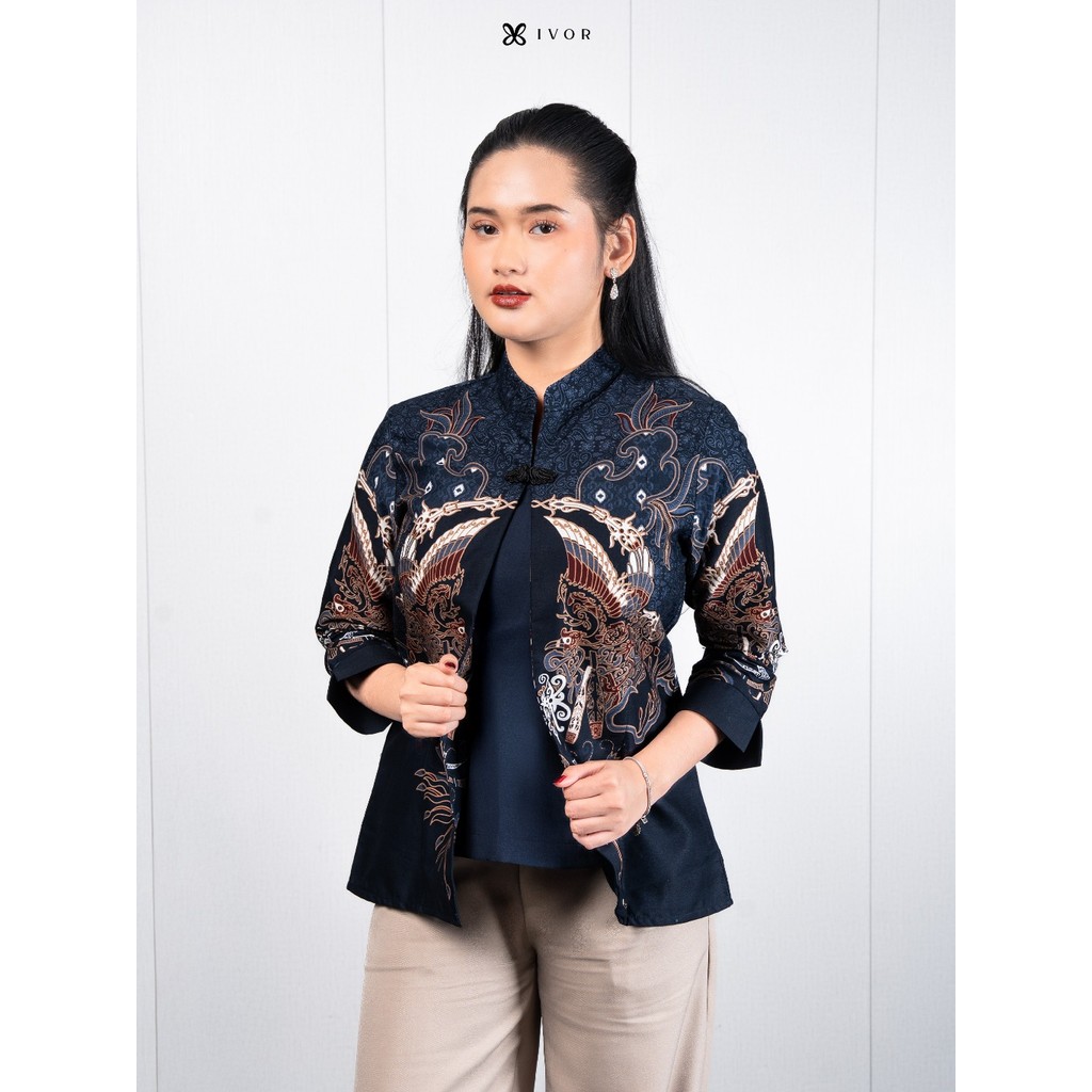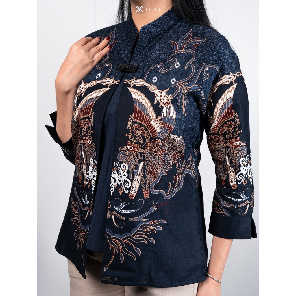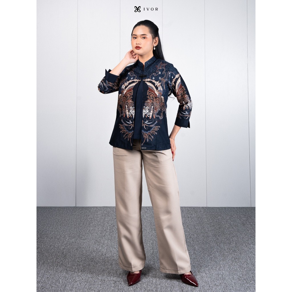 IVOR Kartanegara Blue Blouse Shanghai Batik Wanita Casual