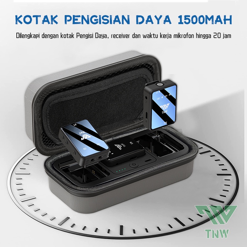 TNW-N11 Microphone Wireless Dual Mikrofon Clip on Mic hp dan Charging Case Mikrofon untuk Live Vlog Youtube Tiktok