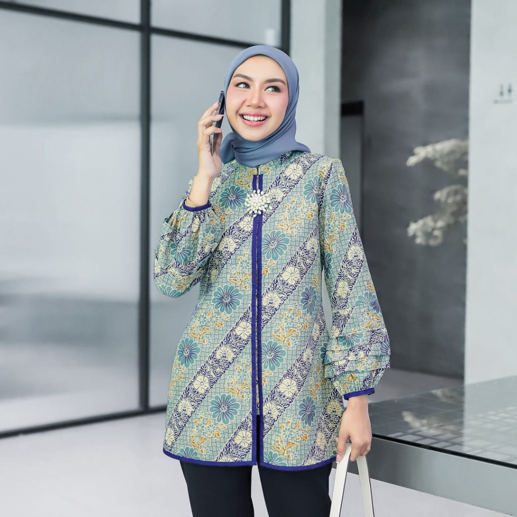 TRIMURTI Tunik Furing Trikot Batik Wanita Modern Batik Kerja Kantor Wanita