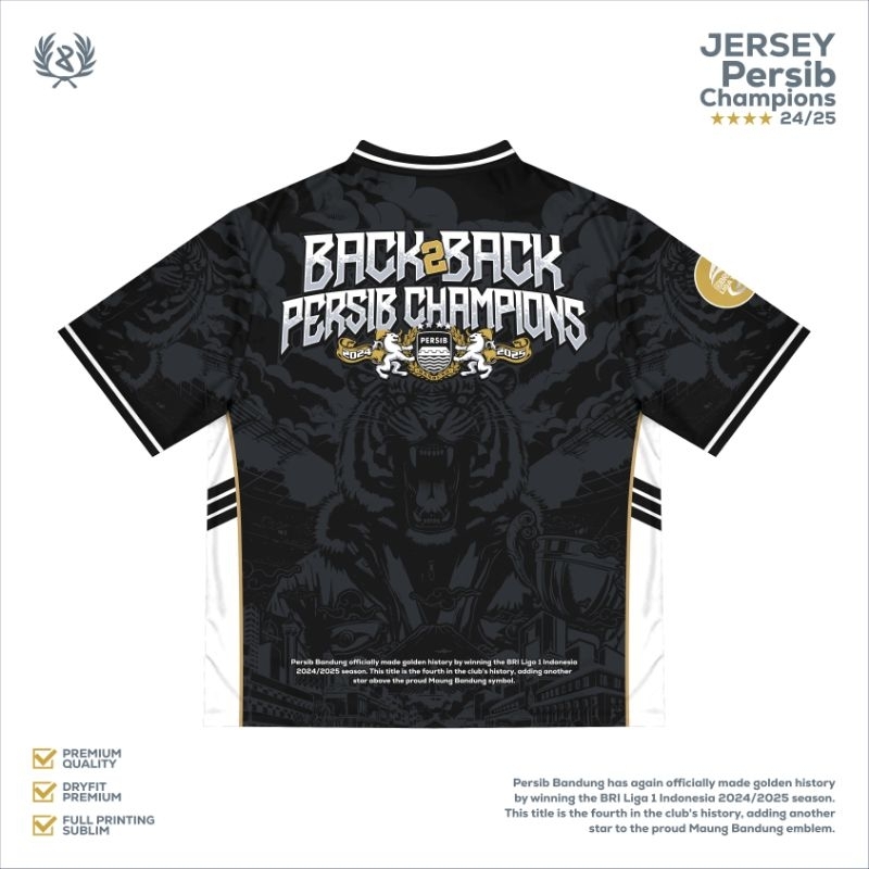 Jersey Vintage Tali Retro Persib Juara Cahmpions 2024 Warna Hitam Keren