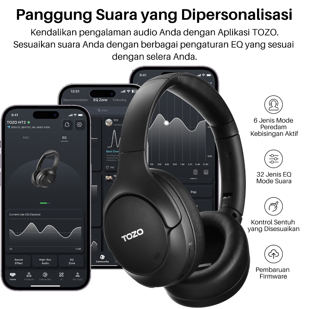 NEW LAUNCHING Tozo H10 (HT2) Hybrid Active Noise Cancelling Hi-Res Audio Headphones ANC + ENC 3 Mics Clear Calls Wireles