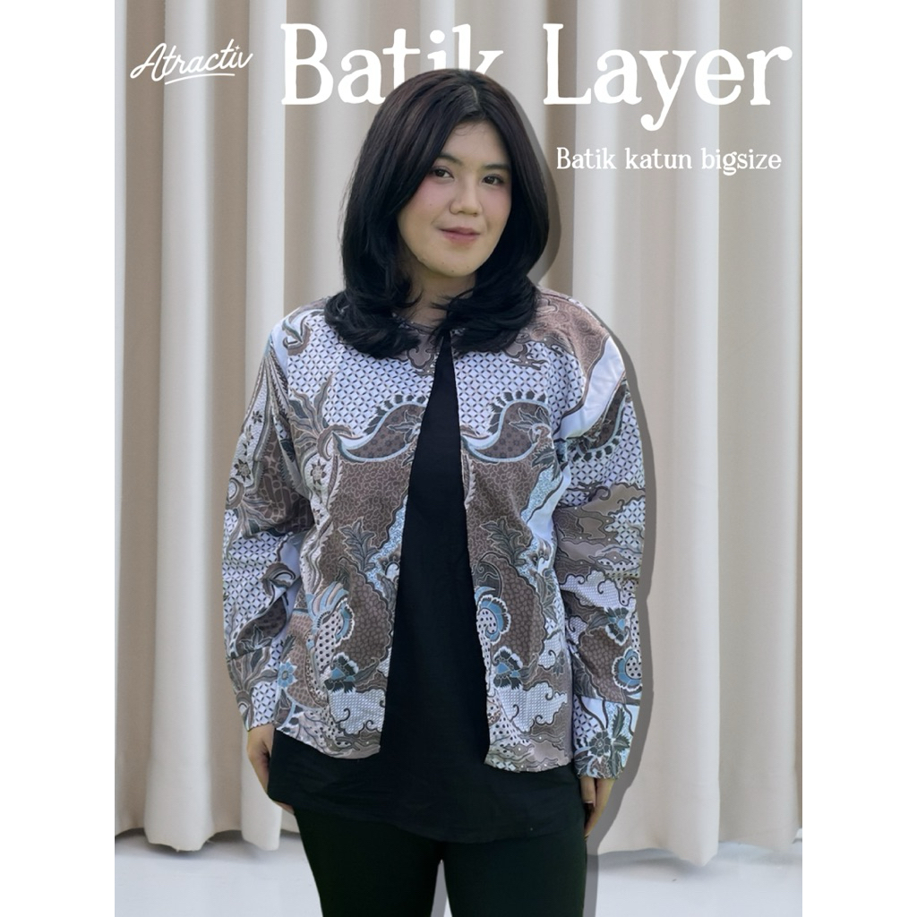 ATRACTIV Blouse Batik Wanita Modern Lengan Panjang Premium LD110 120 130 142 150 Batik Kerja Kantor