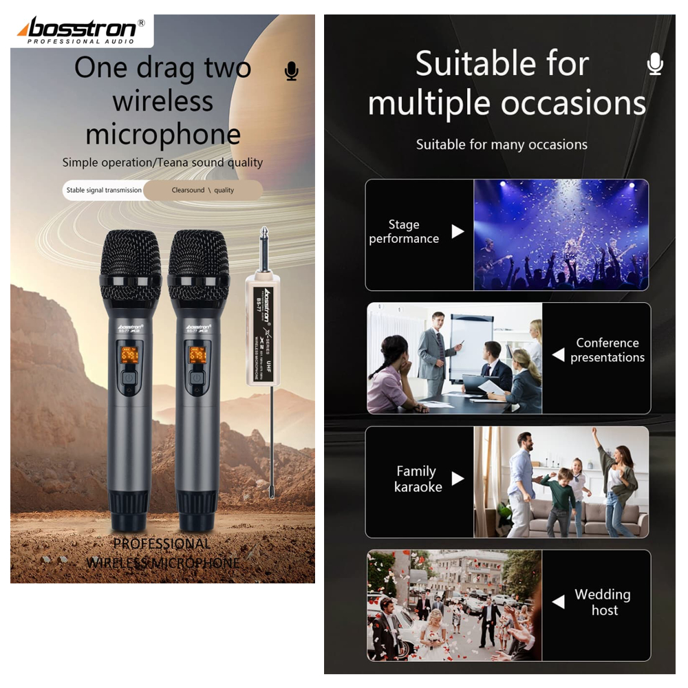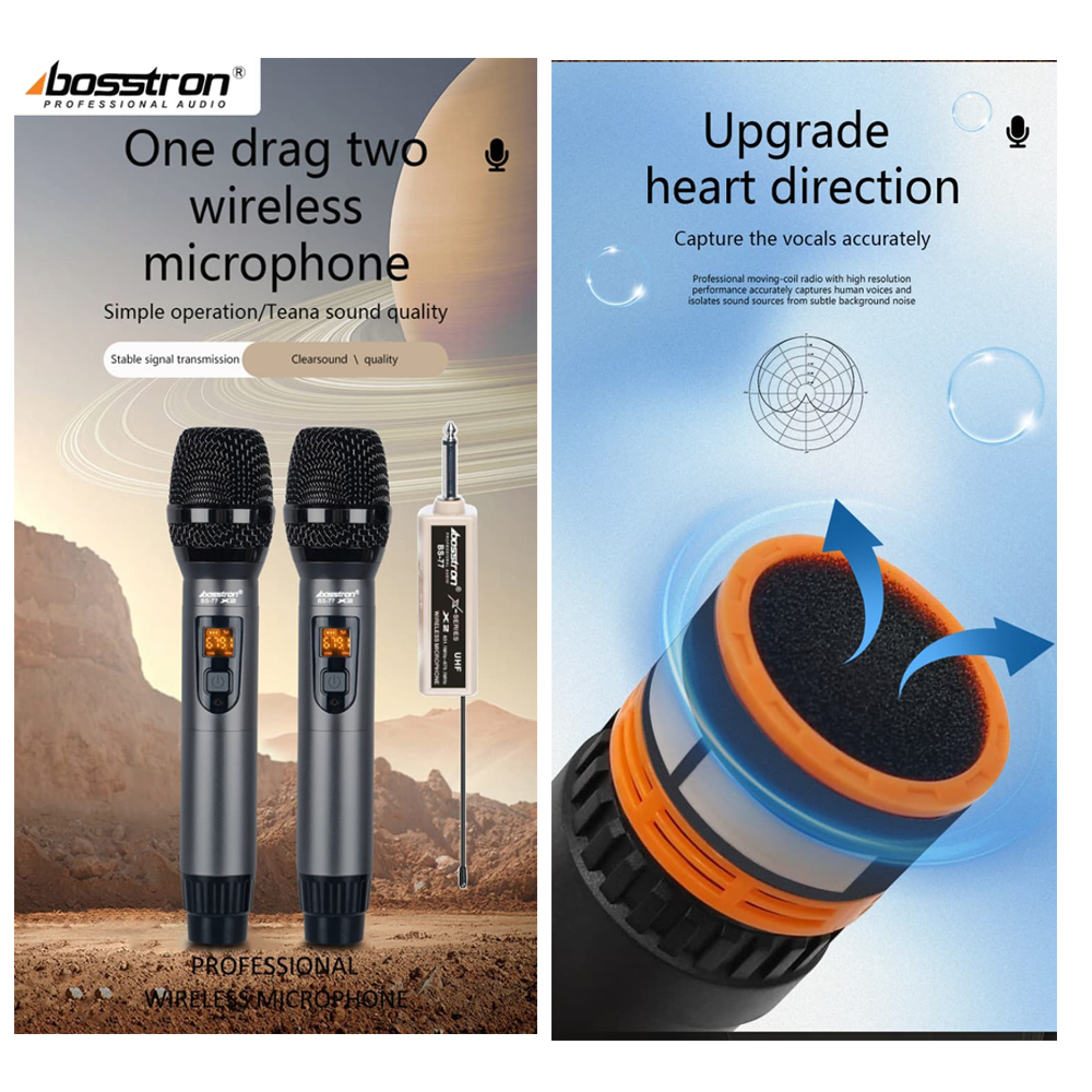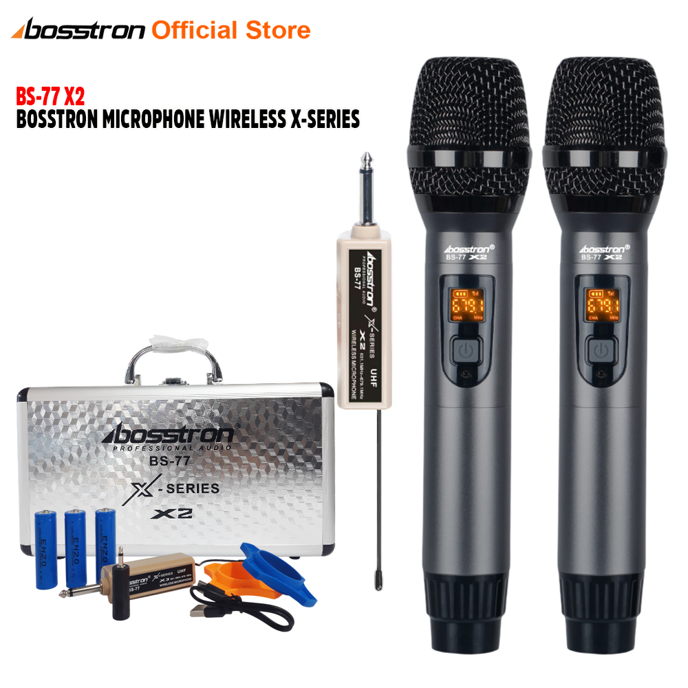 Bosstron Mic Wireless Karaoke BS-77 X2 Microphone Tanpa Kabel Mikropon Body Besi Case Koper