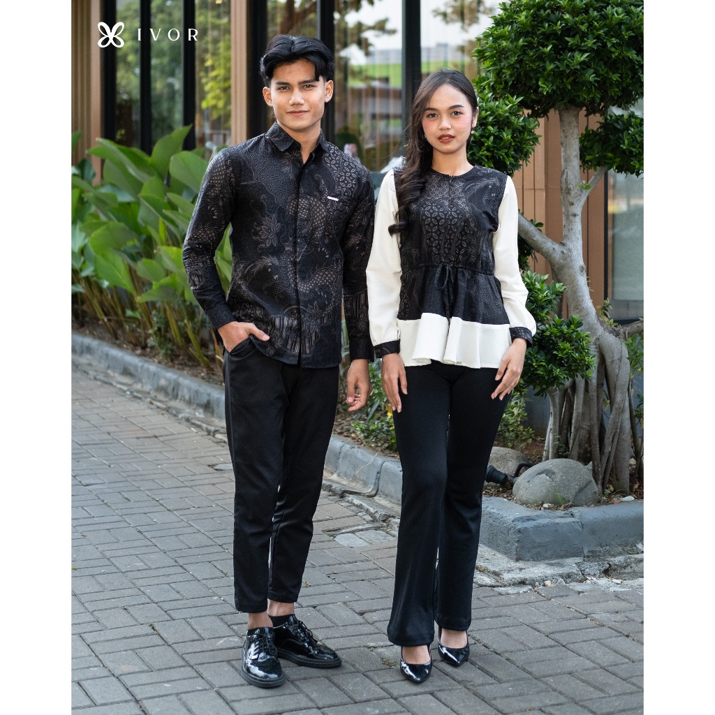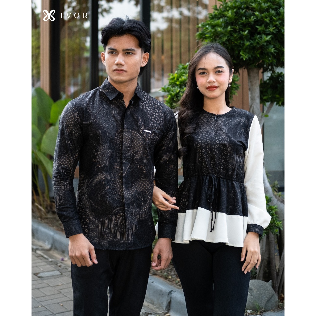 Laskala Batik Premium Nagara Couple Set Batik Pria dan Blouse Wanita Lengan Panjang