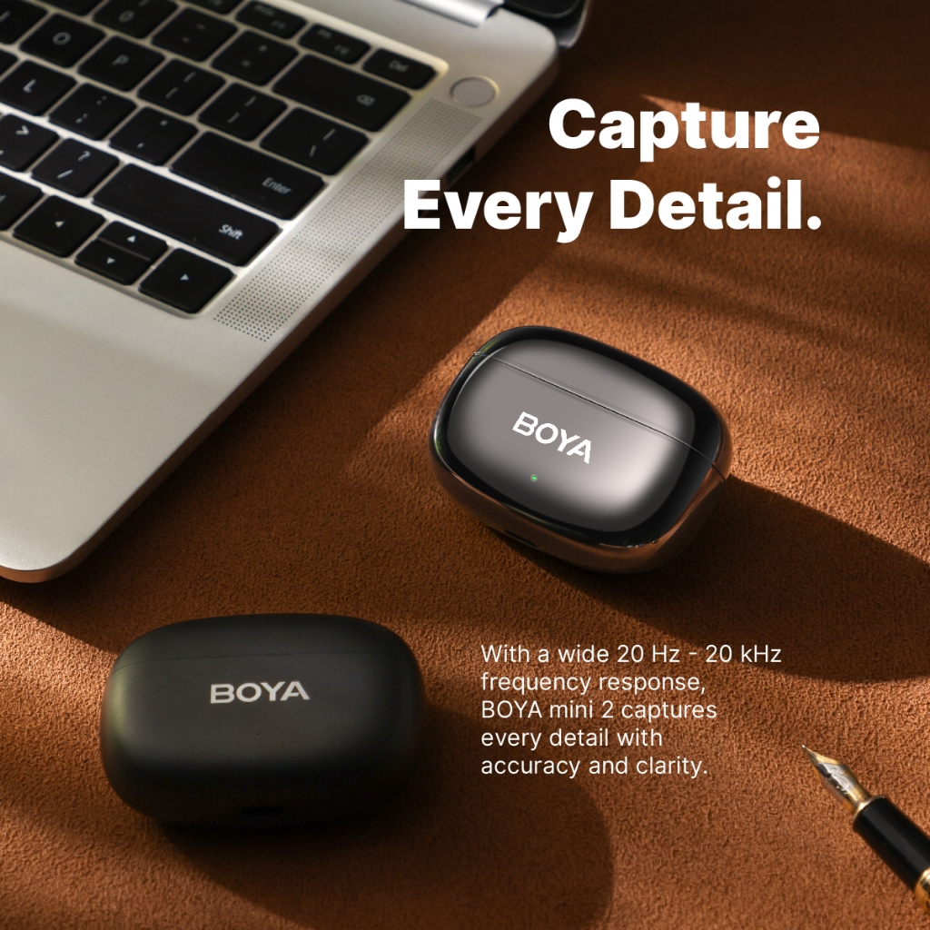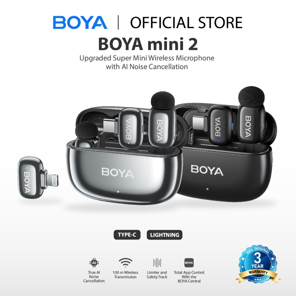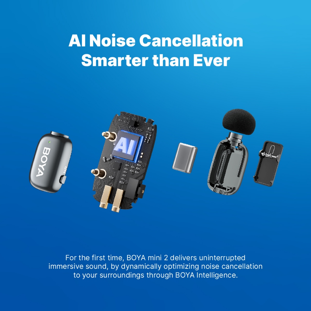 BOYA Mini 2 Wireless Microphone for Vlogger - AI Noise Cancellation, 30H Battery Life, App Control with Charging Case