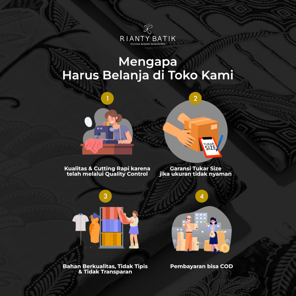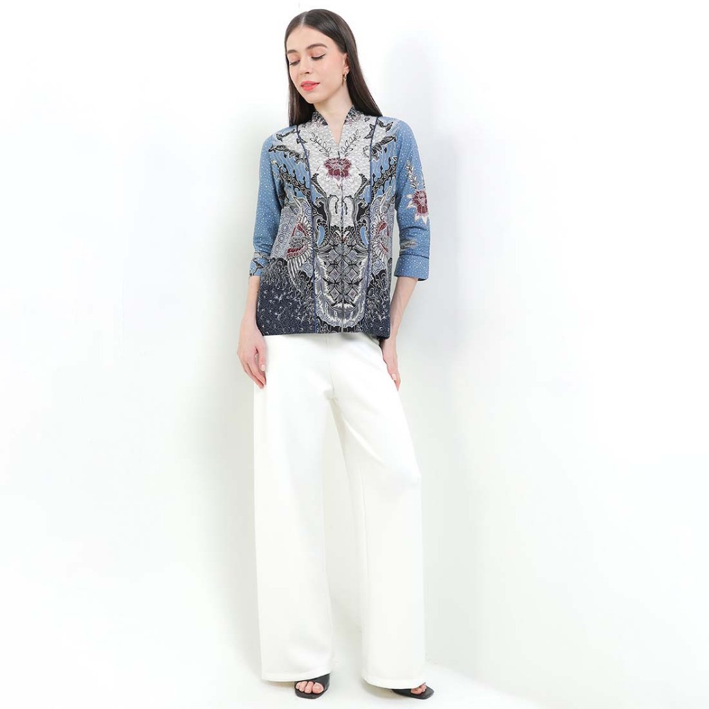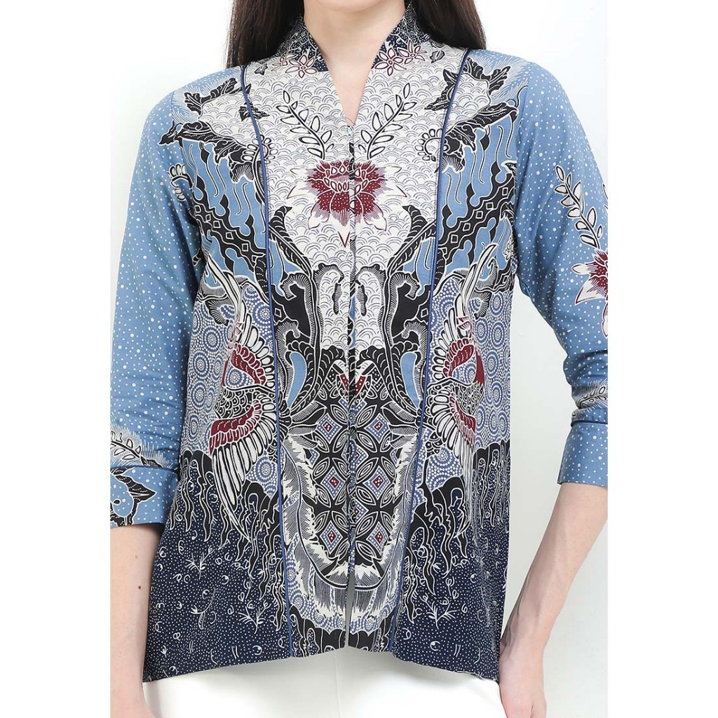 Rianty Batik Premium Wanita Atasan Blouse Biru Marine Marino Blue