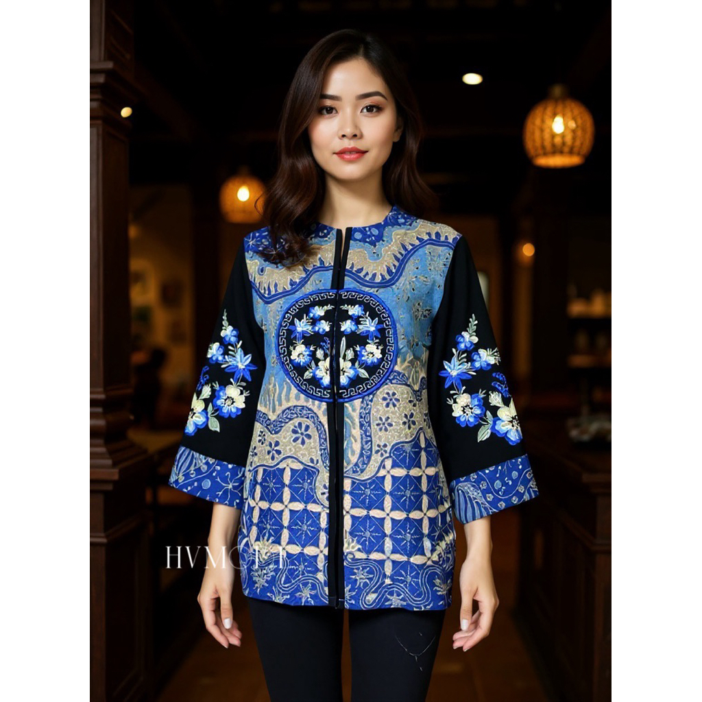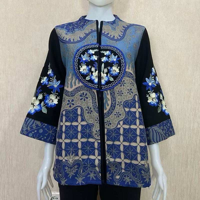 Atasan Batik Dolbi Trikot Bordir - Rian Blouse - Blue