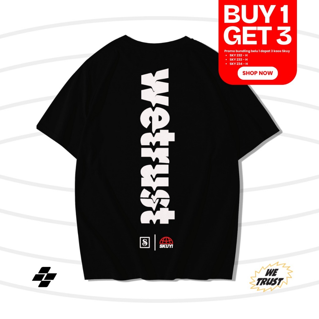 Skuy [Buy 1 Get 3] - Kaos Skuy Dewasa Warna Hitam Lengan Pendek Bahan Cotton Combed 24s | We Trust SKY233 | Hope SKY232