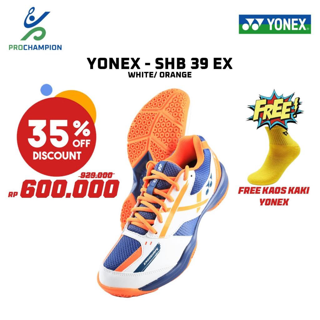 Sepatu Badminton YONEX SHB 39 EX White/Orange