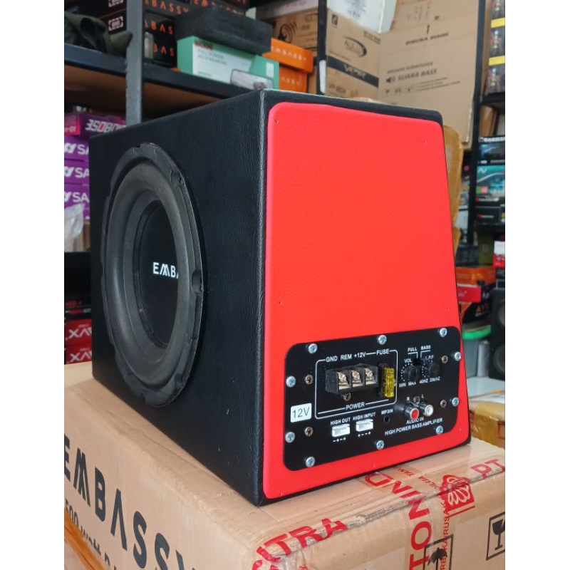 Speaker SUBwoofer ACTIVE 8inch BASS Box Petak EMBASSY ES-844 Max 500 Watt Universal (mobil) 12volt