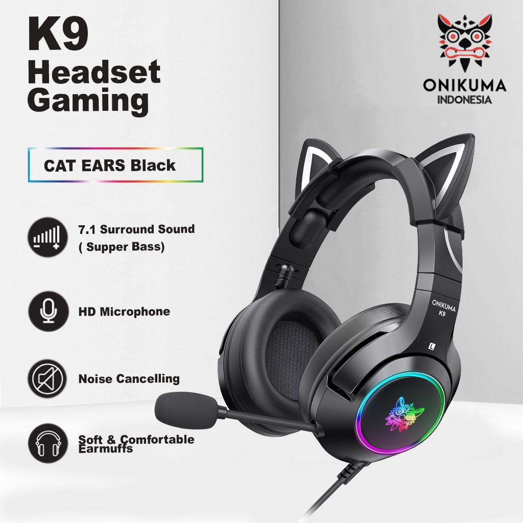 ONIKUMA K9 Headset Gaming Elite Stereo Headphone Gaming Type Cat Mic Bass Original Best Seller For PC Laptop dan HP