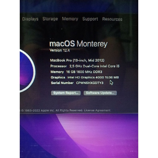 MACBOOK PRO CORE I5 RAM 16GB SSD 512GB HDD500GB MD101 MONTEREY MULUS