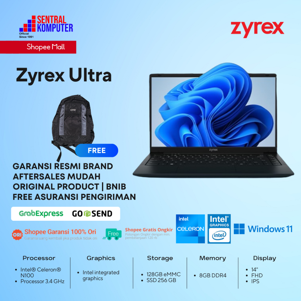 LAPTOP ZYREX ULTRA N100 8GB 128GB 256GB W11 14.0 INCH
