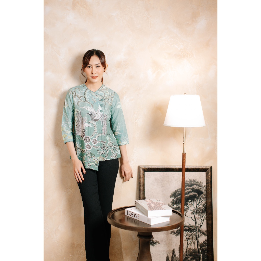 Adyatma Namora Sage Green Blouse Batik Wanita Katun Digital Print