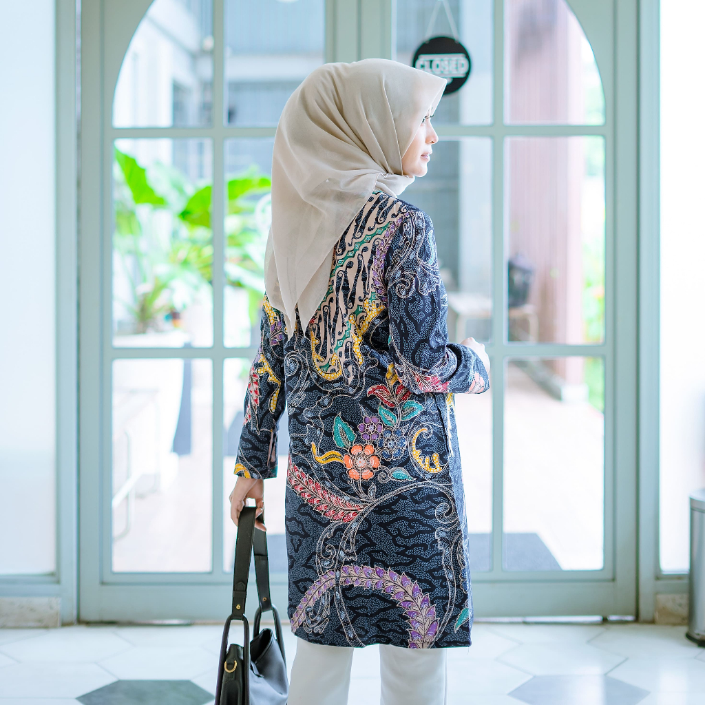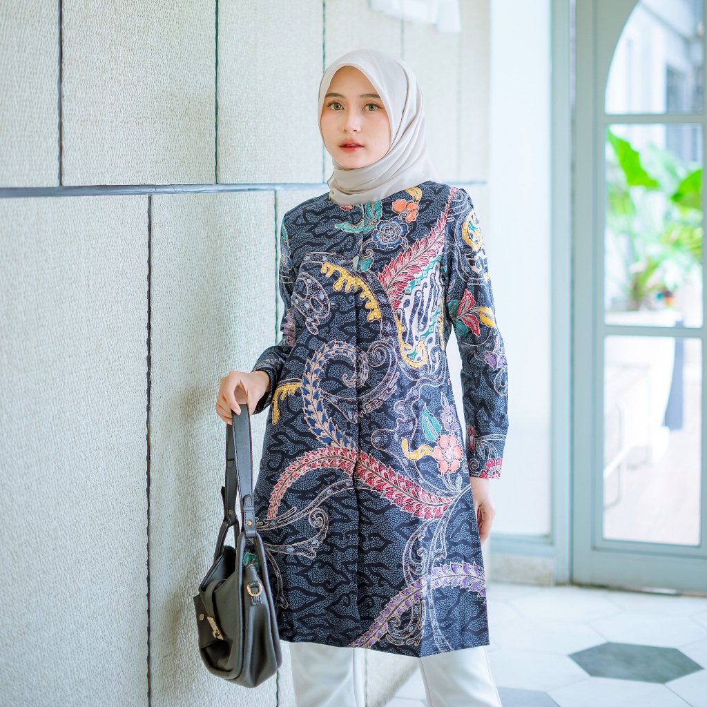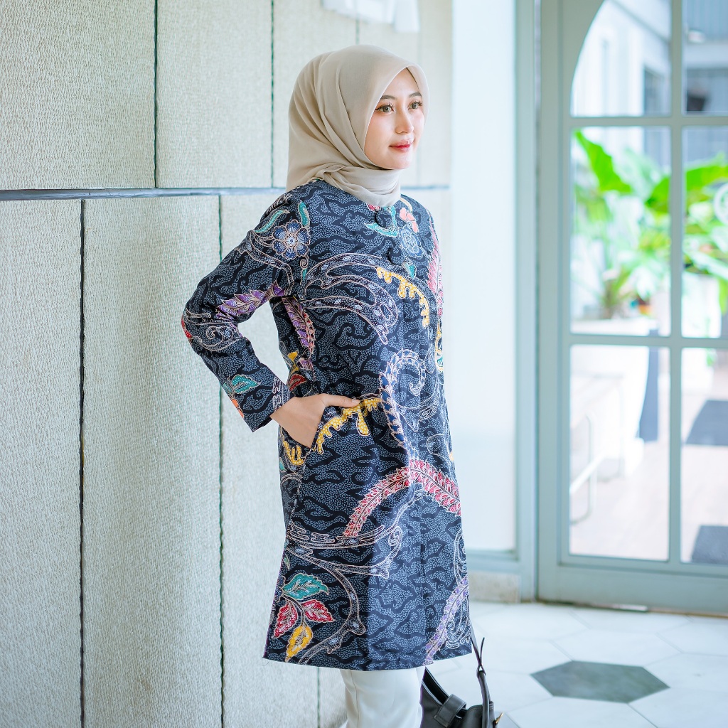Linggayoni_Tunik Batik Wanita Lapis Trikot Katun Premium Motif Lokahita Lengan Panjang Busui Frendly