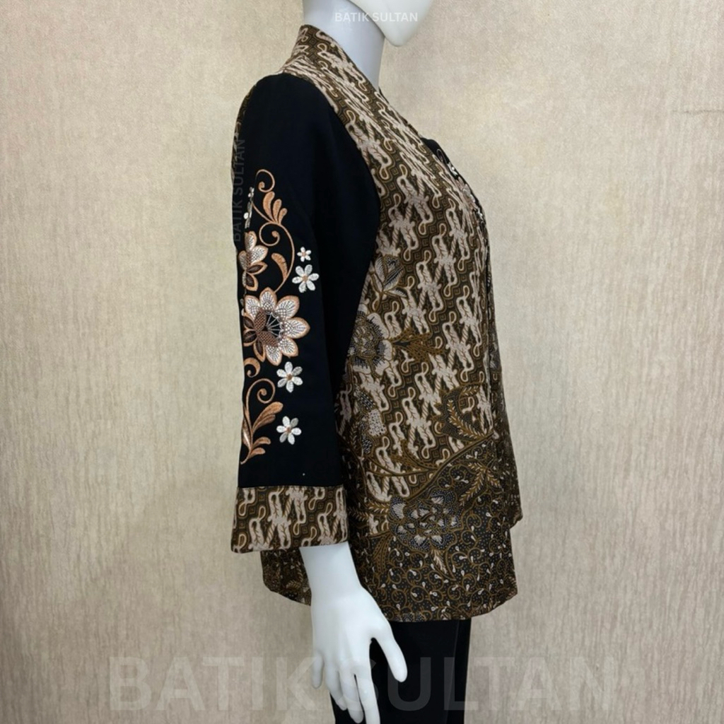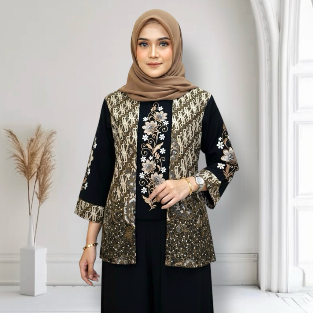 Atasan Batik Blouse Wanita Bordiran Premium Kain Katun Doby Elegan l Batik Cewe Mewah Kantor Kondangan Terkini Kain Doby