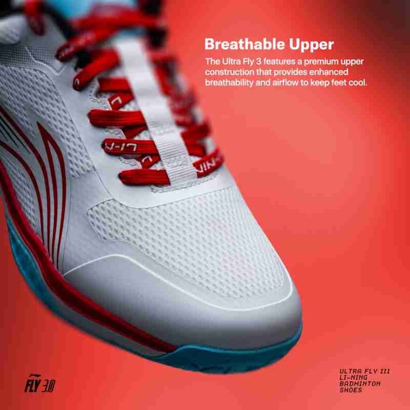 New Sepatu Badminton Lining Ultra Fly III / 3.0 AYTT053 White / Red / LtBlue