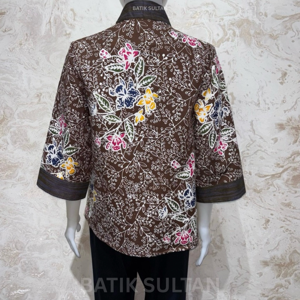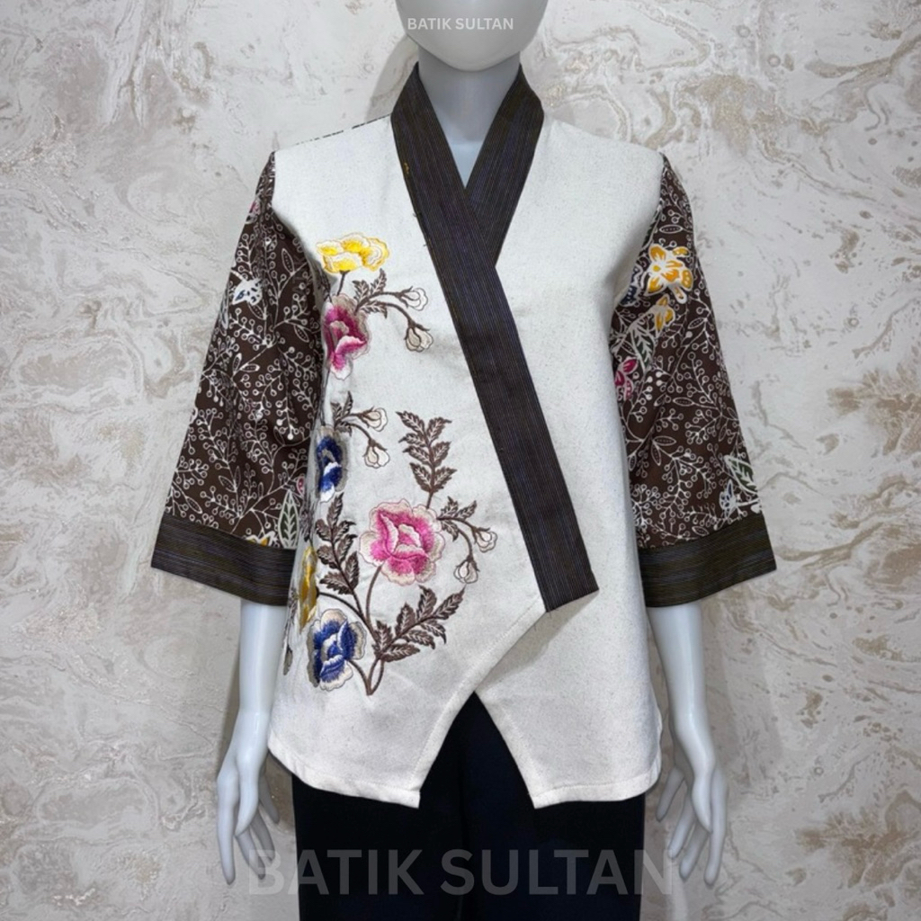 Atasan Batik Blouse Wanita Bordiran Premium Kain Linen Kombinasi Katun Elegan l Batik Cewe Mewah Kantor Kondangan Terkin