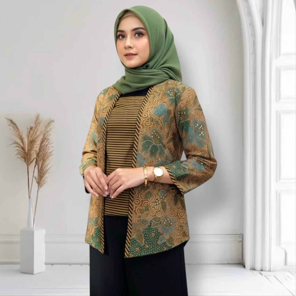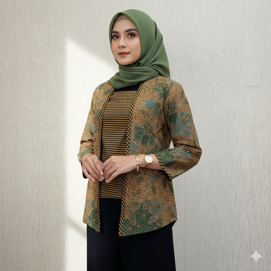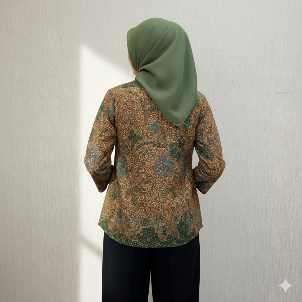 Atasan Batik Blouse Wanita Bordiran Premium Kain Katun kombinasi Tenun Elegan l Batik Cewe Mewah Kantor Kondangan Terkin