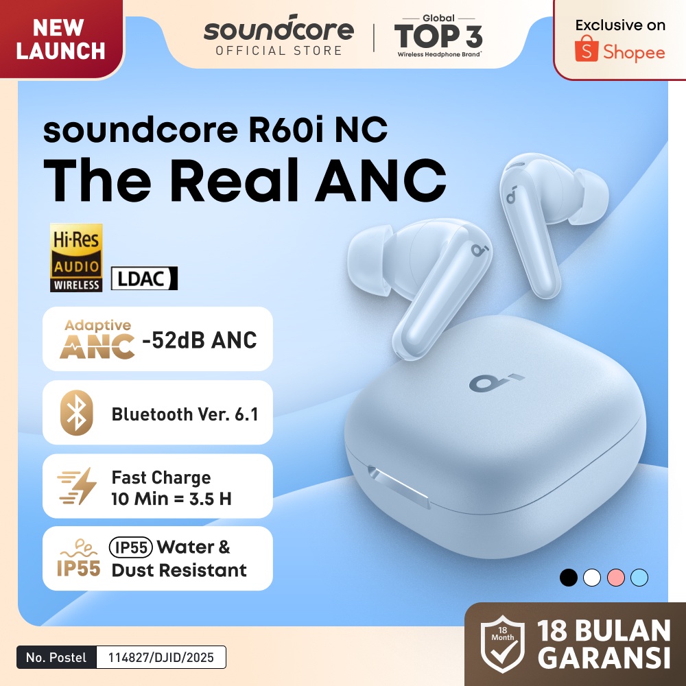 Soundcore R60i NC (R50i NC Upgrade) by Anker, Real-Time Adaptive Noise Cancellation, Hi-Res Sound, AI Translation Earbud