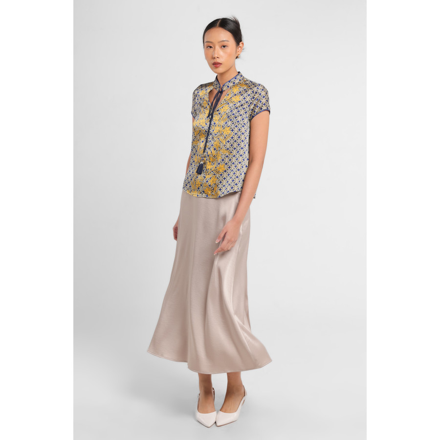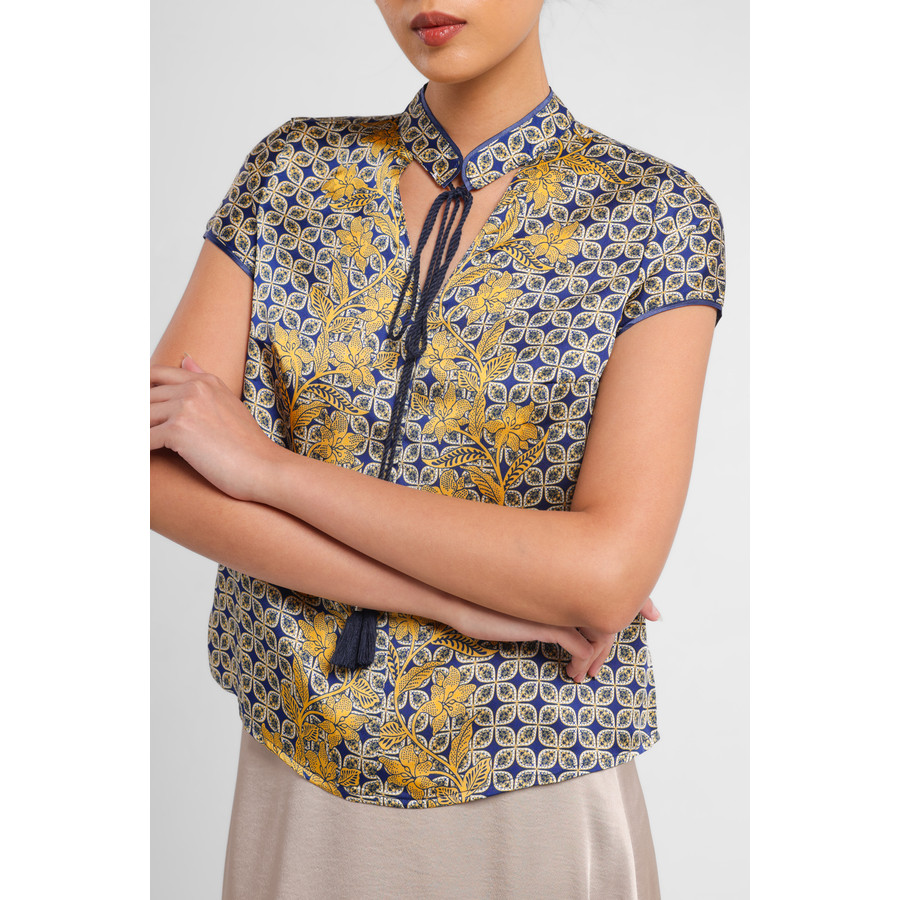 MINIMAL - Aqila - Blouse Motif Print Batik - Navy