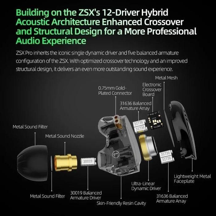KZ ZSX PRO with Mic 1DD 5 BA In Ear Monitor 12 Driver Hybrid Metal Earphone Headset