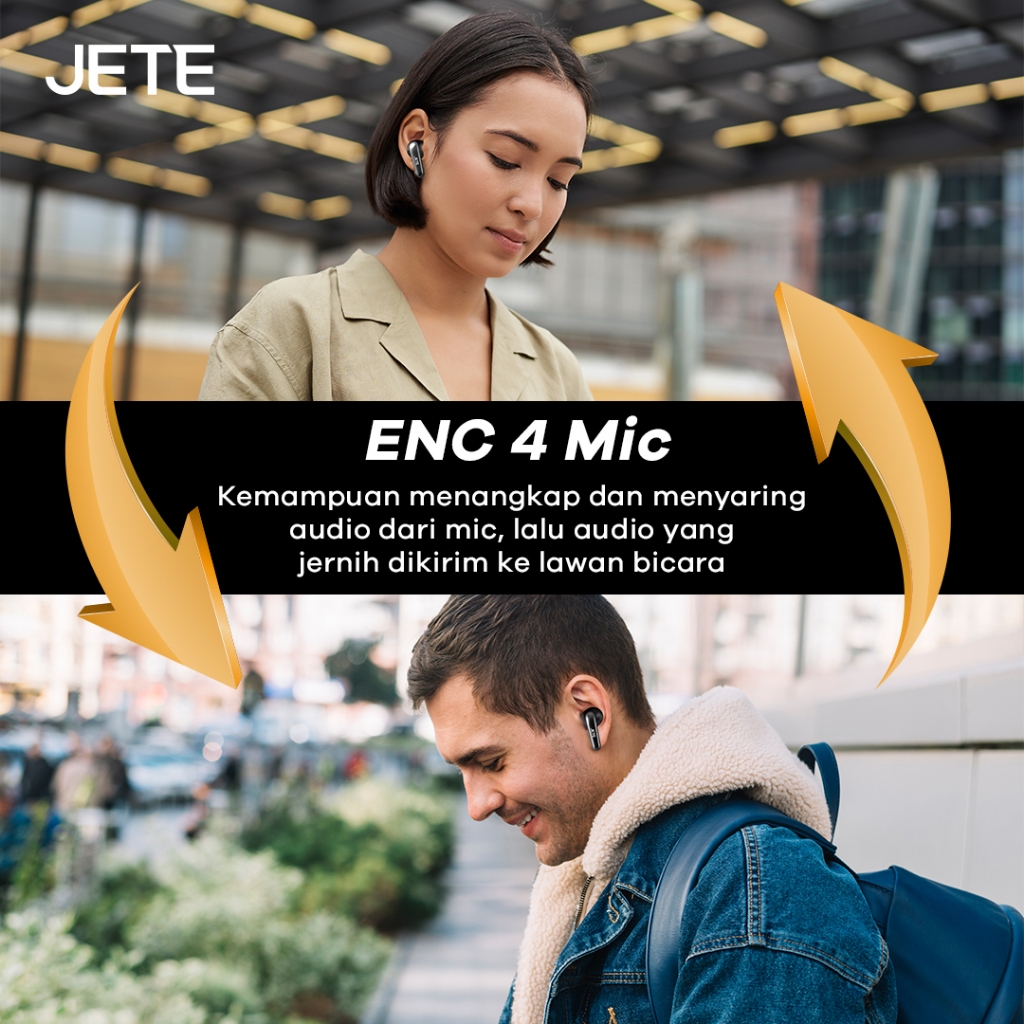 TWS Earphone Bluetooth JETE TX1 Active Noise Canceling IPX5 With ENC 4 Mic - Garansi 2 Tahun
