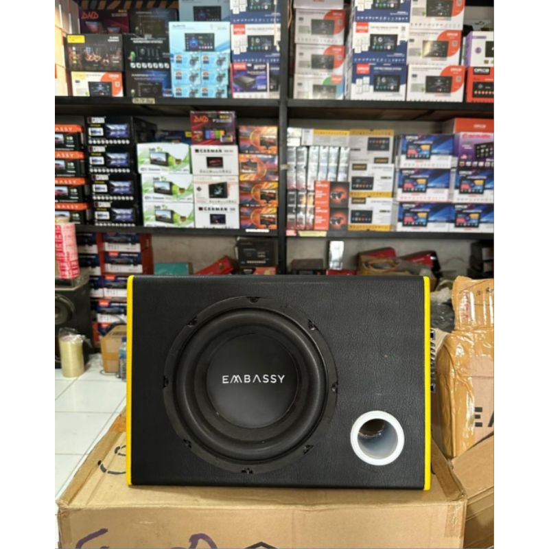 Speaker BASS BOX/BASS TUBE (Active) 8inch Embassy Premium max 600Watt. 12Volt cocok di semua mobil