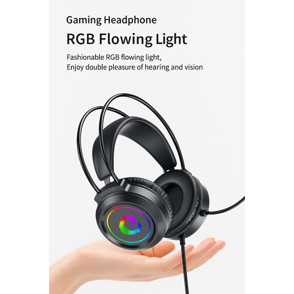 H85 Headset Gaming RGB Earphone Surround Sound Bass Stereo dengan Microphone Headphone Kabel Gamers