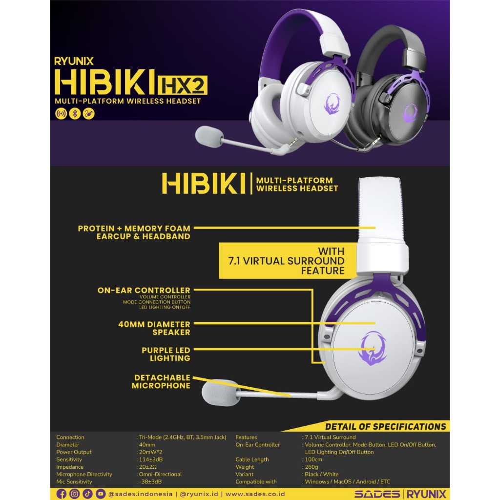 Headset Gaming 3in1 Connection Sades Ryunix Hibiki HX2 Gaming Headset 7.1 Wireless Multi Platform