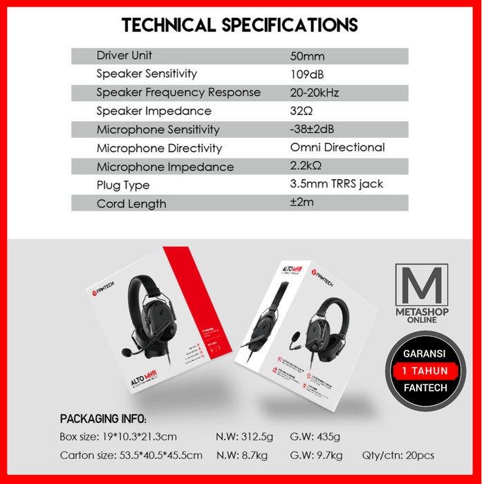 Fantech ALTO MH91 Multiplatform Headset Gaming Mobile Free Splitter
