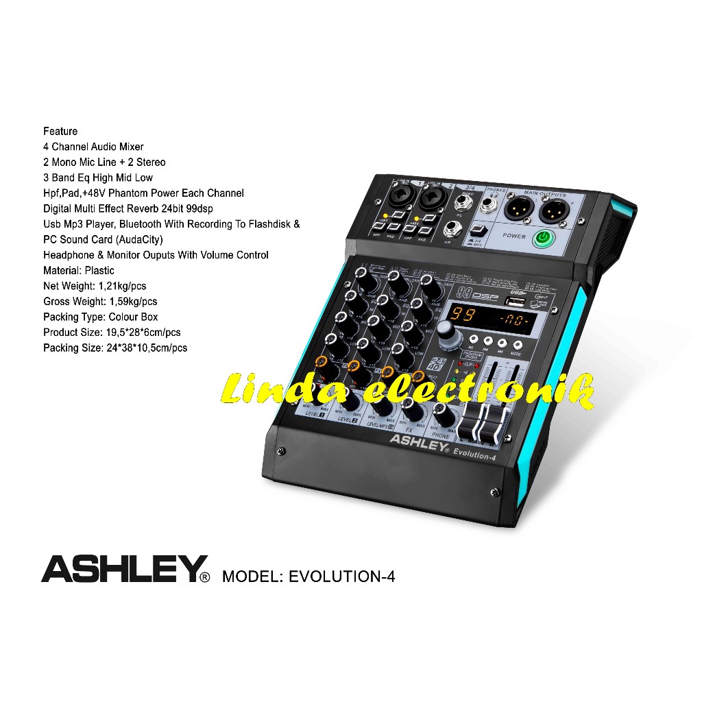 MIXER ASHLEY EVOLUTION 4 4 CHANNEL SOUNDCARD ORIGINAL GARANSI RESMI