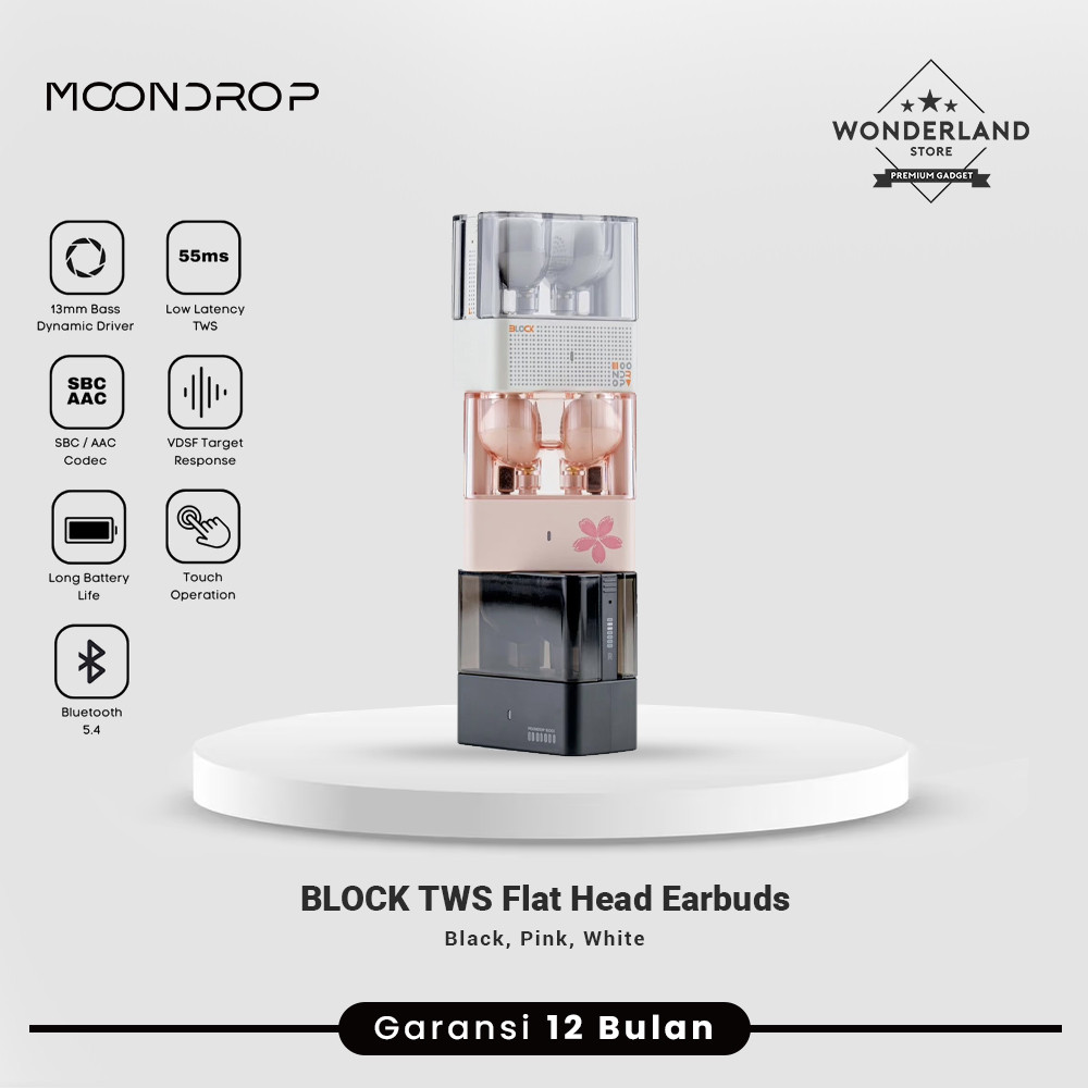 Moondrop Block TWS Bluetooth Flat Head Semi in Ear Earbuds Earphone Low Latency 13mm Driver - Wonderland Store Surabaya