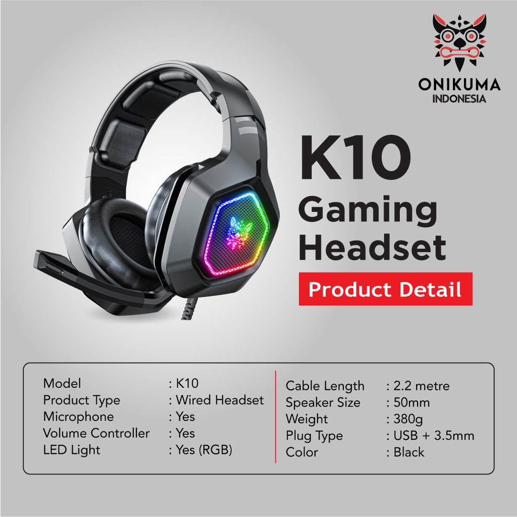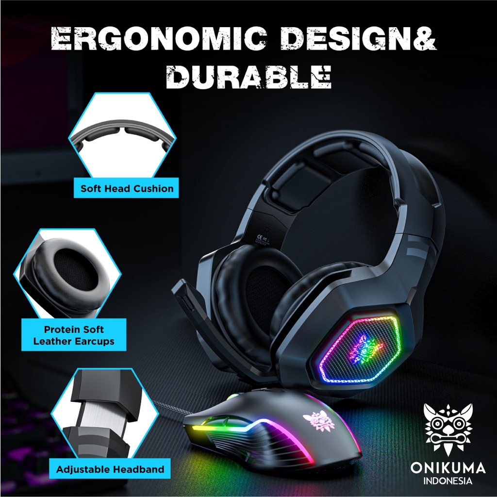 ONIKUMA K10 7.1 Headset Gaming Mic Full Bass Rgb Light Black For PC Laptop dan HP Headphone Gaming