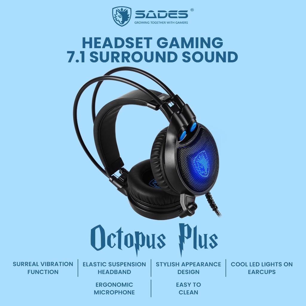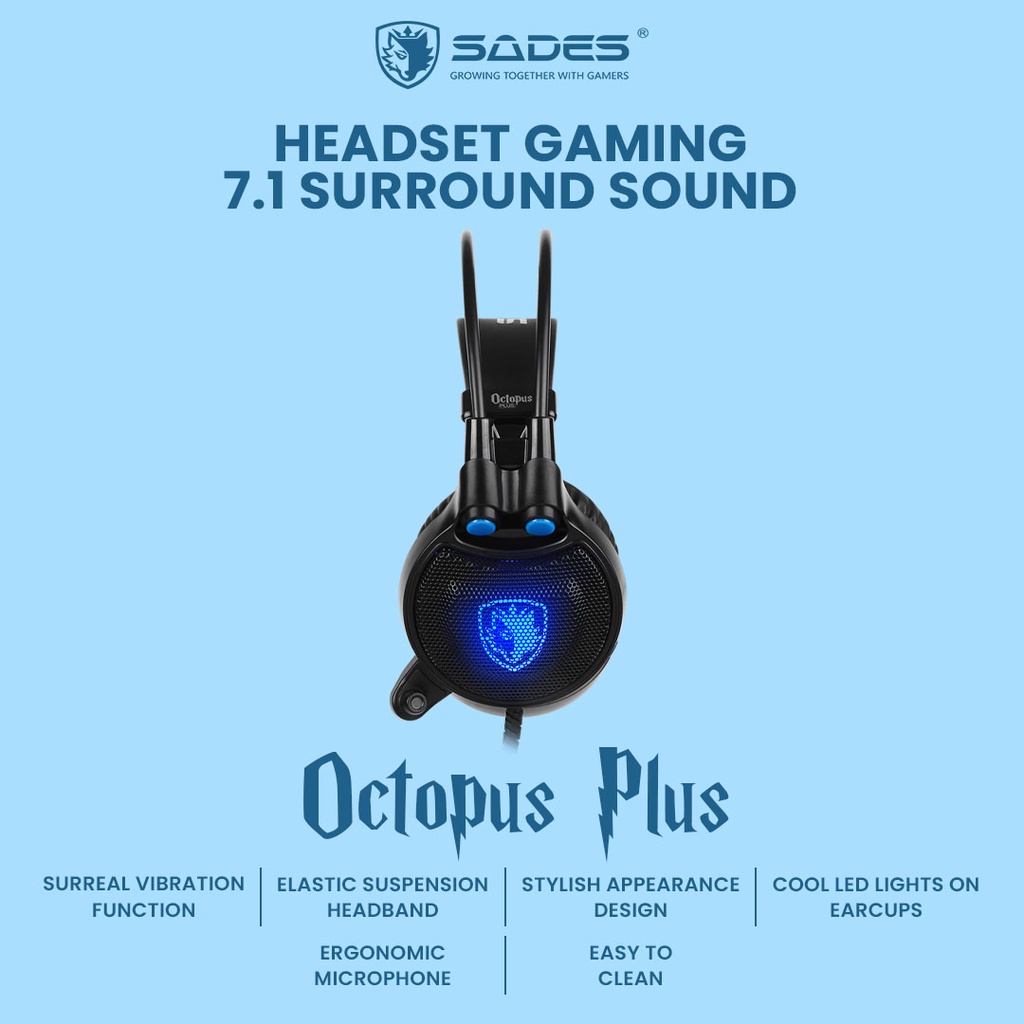 Headset Gaming Sades Octopus Plus 7.1 Surround Sound with Vibration