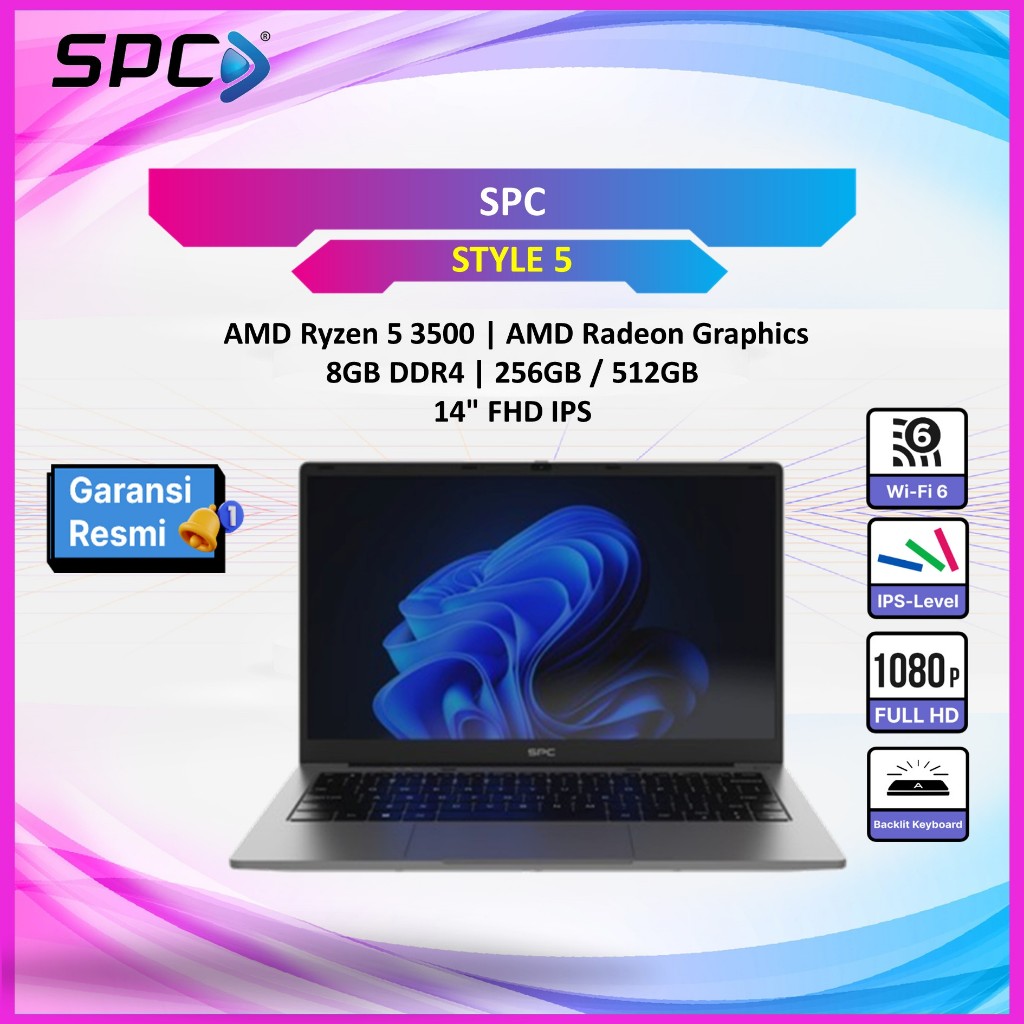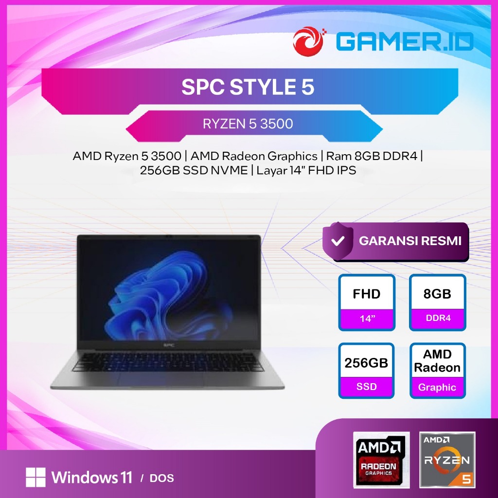 Laptop SPC STYLE 5 RYZEN 5 3500 8GB 256GB DOS 14.0FHD IPS Backlit Keyboard Windows 11