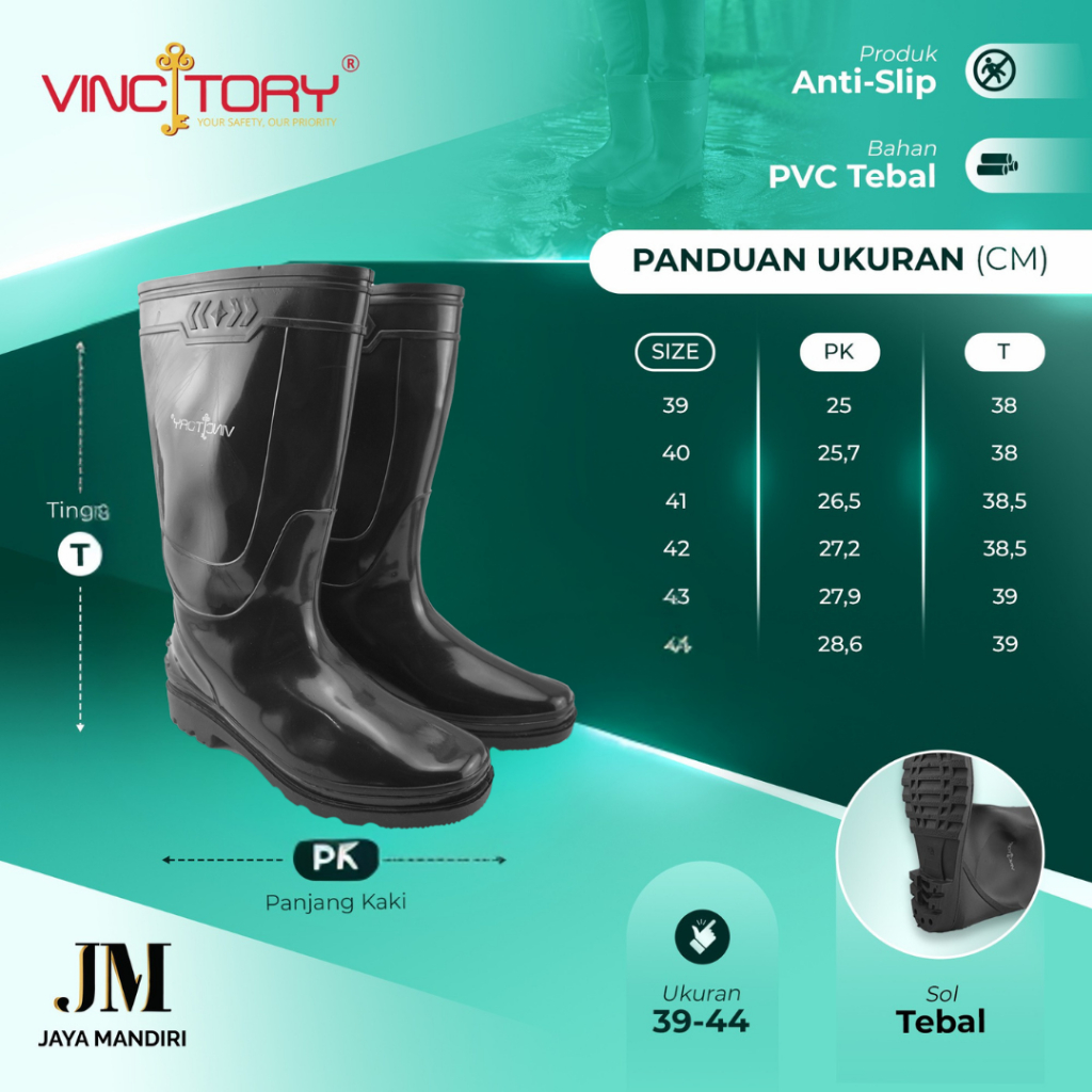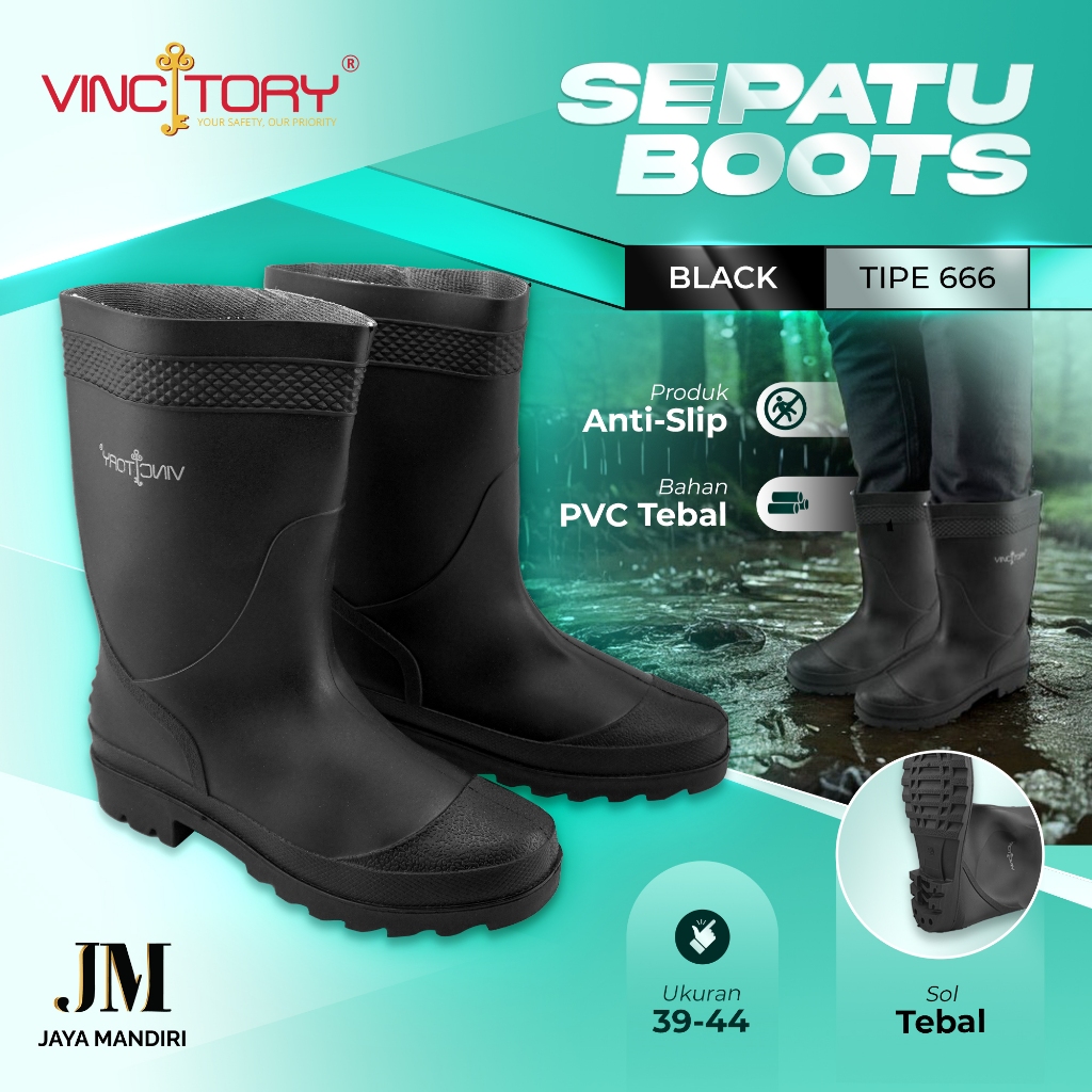 Sepatu Boot Vincitory Untuk Sawah Proyek Safety Bahan Karet PVC 2836 2841 Murah Gratis Ongkir