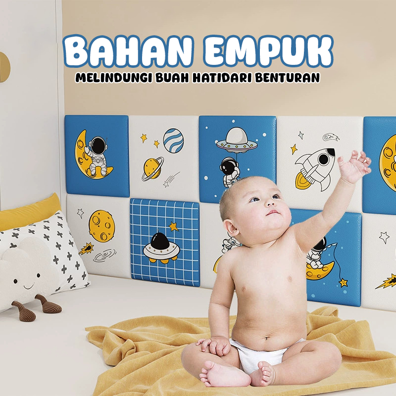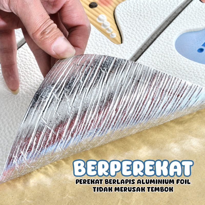 Paus Biru - Wallpaper 3D Tebal Dinding Kamar Tidur Anak Sticker Foam Headboard Tahan Benturan Murah Gratis Ongkir